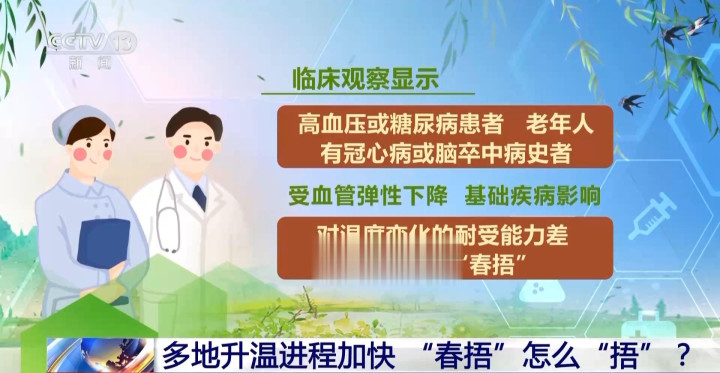 高血压、糖尿病患者,冠心病、脑卒中病史者等:寒邪易诱发基础疾病发作,需十分留心“春捂”;