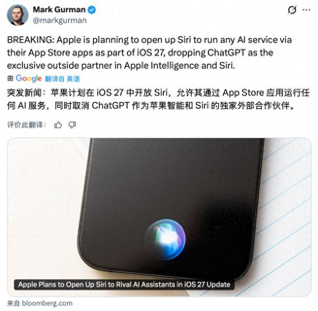 博亚体育(中国) 苹果iOS 27绽开Siri接入大肆AI做事, ChatGPT独家地位闭幕
