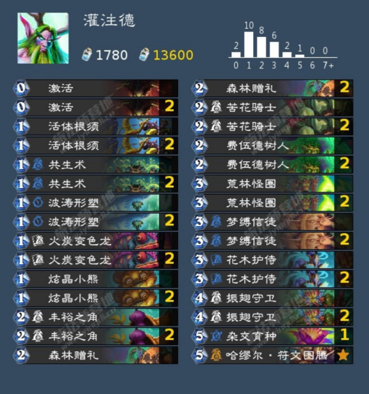 退环境之后有好多解牌和强力卡组都退环境了,因此蓝本强度就还可以的灌输德又一次崛起了,搪塞混着混着植物魔像就能养到很大了,咫尺环境里念念要解德鲁伊连三接二的大魔像也挺艰难的。灌输德也可快可慢,可以采纳带上护路者玛洛恩,阿梅达希尔,致使莎拉达希尔,也可以只带低费奴隶和法术,不外咫尺个东说念主嗅觉灌输德有可能像上上个版块的鱼东说念主骑,版块初期杀遍天梯,但后续捏灌输德的卡组变多后可能胜率就会变低,更何况德鲁伊我方工作里就有比较好打灌输德的卡组:铺场德。