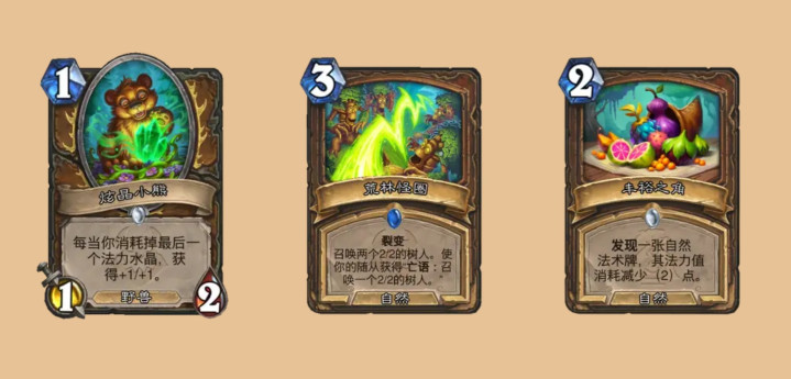 其实灌输德和铺场德也不完全是前朝之剑,照旧带了不少强力新卡的,比如炫晶小熊,这张卡在预览的时候就被寰宇看好了,实战里照实很强,滚雪球起来十分猛,合营硬币和激活还可以一趟合内屡次成长。而德鲁伊的裂变法术荒林怪圈也很锐利,裂变自身就很顺应快攻体系,小德拿到的照旧3费的裂变法术,体感上如果起手留通常3费就可以准时拍下了,稍慢一些4费合营小熊或者根须一说念拍更锐利。另外灌输德卡组里的丰裕之角嗅觉很容易找到裂变法术,减2费后两张都造成1费,致使可以毋庸等他们合起来手动打出来能鼓舞更多灌输程度,而在铺场德卡组里,天然裂变法术容易被过热扔掉,然而因为分开也不太亏模,是以过热扔半张裂变法术更容易罗致,嗅觉这两张牌都会是下次均衡补丁的热点东说念主选。
