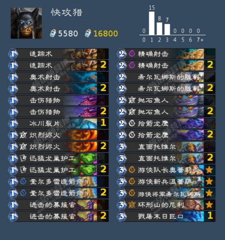 不外猎东说念主另一套卡组强度就很高了,这套卡组带了好多1费的奴隶和法术,还有抛石鱼东说念主,迅猛龙巢护工和戮屠末日这样能给1费牌的奴隶,奎尔多雷造箭师起手必留,前期基本能够每回合白嫖一次射箭,给对面血量纷乱的压力。因为环境里没啥解牌,即使是1费奴隶也很难处治,后期靠过牌和直伤无间给压力,抽到直面托维尔还能有一波小爆发,不外清风通常5费还没来得及直面托维尔就依然把敌手打死了,马速是真的快,况兼打灌输德和铺场德也能有一战之力,全体强度要比龙猎强太多了。