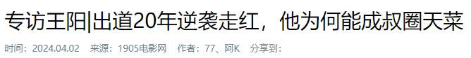 王阳其时处于奇迹冬眠期,一直在错乱圈里肃静打磨演技。