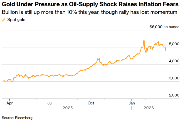 石油供应冲击加重通胀担忧,黄金承压