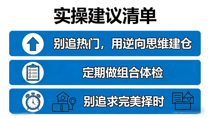 我教客户的作念法很通俗:每年3月、9月固定调一次仓,浩荡不管。把盯盘的时分用来陪家东说念主、念书,收益反而更好。
