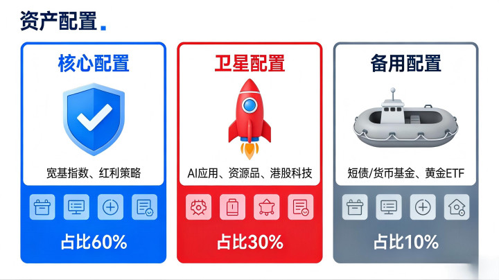 贝莱德2026年的投资臆想里提到一个不雅点:面前环境已不合乎“懒东说念主式”静态建立,股债配比仍是中枢。但我发现平等闲投资者来说,与其常常调仓,不如把中枢仓位钉死在宽基和红利上——这两类钞票耐久年化8%-10%,要害是拿得住。