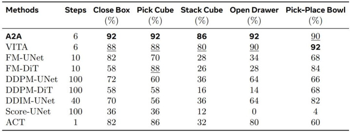 A2A 计谋的策画逻辑极具直观:将动作生成的基准从「随即噪声」切换为「动作历史」。