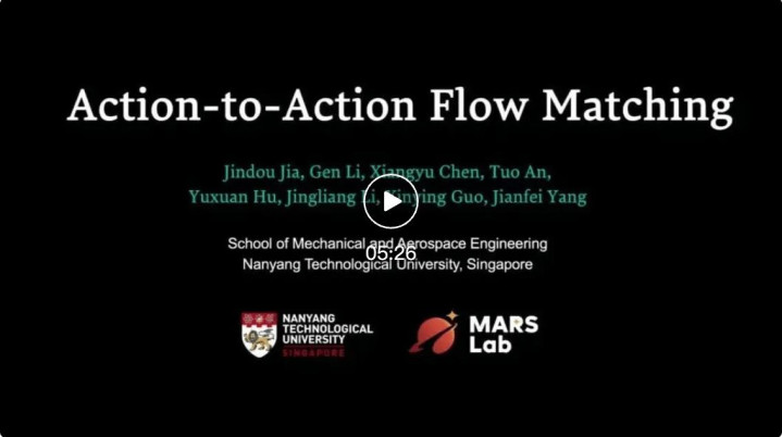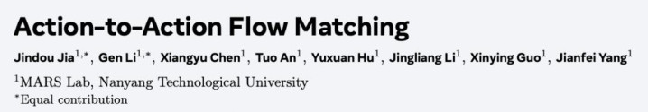 新加坡南洋理工大学 MARS Lab 提议 Action-to-Action (A2A) Flow Matching 新范式:以历史机器东说念主轨迹而非随即噪声行为生成开始,冲破了生成速率与精度的双重瓶颈,达成了更高教练效果、极速推理反映及超卓的泛化施展。