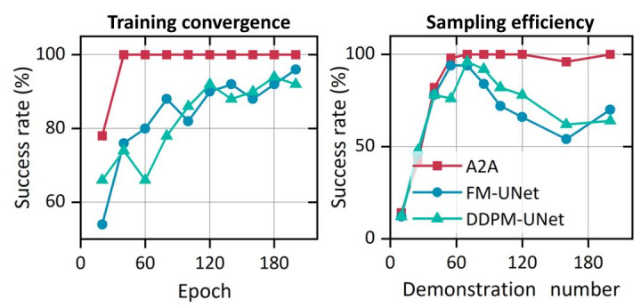 领先教练效果方面,A2A 展现出极快的拘谨速率,仅需小数教练轮次即可达到平定的 100% 见效用。在 5 类仿真任务中,其见效用全面进步于 8 种主流要道,博亚体育app中国官方入口并在有限数据下也大要保管高性能施展。