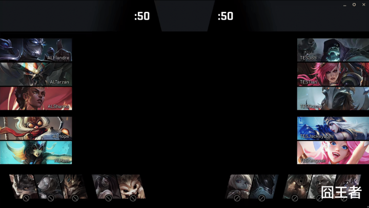 第一局比赛,TES蓝色方,禁用:发条、艾希、皇子、娜好意思、泰坦,采取:369鳄鱼、Tian赵信、Creme沙皇、JackeyLove韦鲁斯、fengyue璐璐;AL红色方,禁用:阿卡丽、卡尔玛、兰博、芸阿娜、希维尔,采取:Flandre塞恩、Tarzan潘森、Shanks瑞兹、Hope伊泽瑞尔、Keal巴德