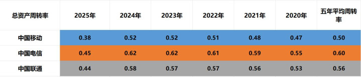 最新三季度营运能力:中国电信>中国联通>中国迁徙