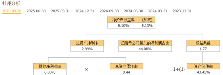 看完毕公司的上风亮点,接下来,咱们仍是接受经典的杜邦分析法,将公司的最新三季报财务中枢数据净财富收益率进行拆解,