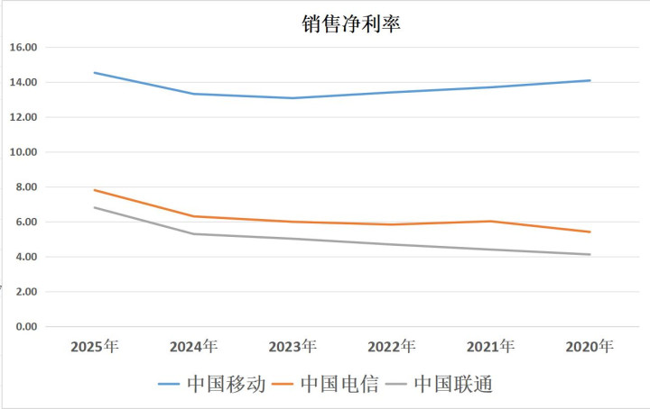 中国电信、中国联通两家的净利率在畴前五年飞腾。