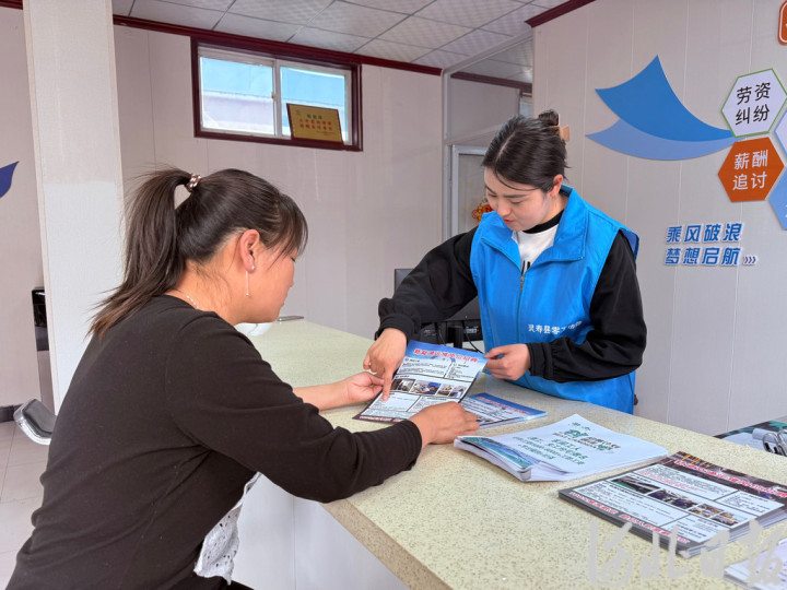 3月17日,石家庄市灵寿县零工市集内,使命主说念主员正在向求职者保举岗亭。河北日报见习记者侯淼摄