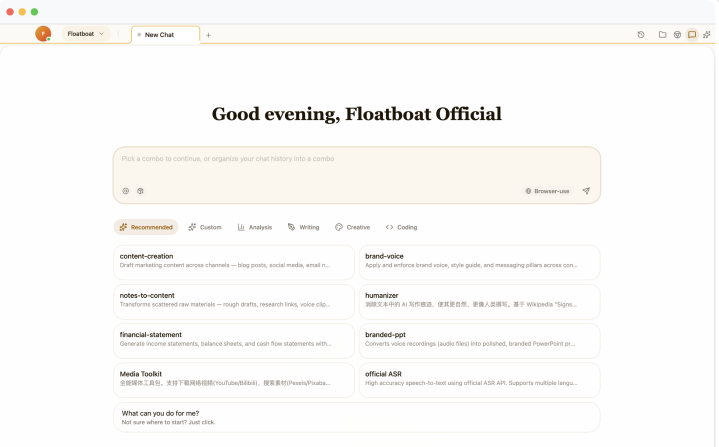 基于这么的不雅察,Floatboat.ai在想象居品时遴荐了另一条旅途:把Agent径直放进用户的使命环境里。