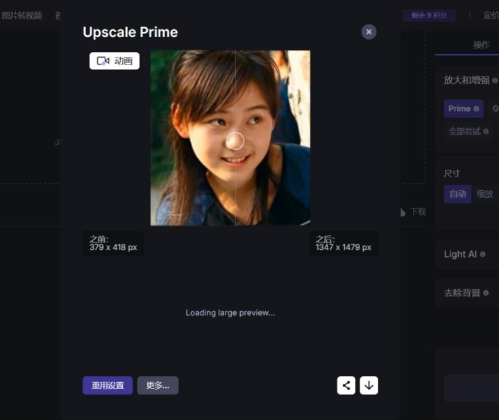 中枢上风:专科级缔造水准,十足不错在线且一键缔造高清图,无损放大最高8倍,精确去噪修婉曲、收复细节,无需注册,专科东说念主士必备。