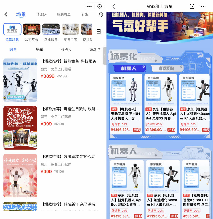 界面新闻记者查阅擎天租平台发现,以生辰场景模式打包工行为例,博亚体育(中国)智元灵犀X2重迭服装说念具,日房钱为999元,包含全程处事。春晚同款宇树U1东说念主形机器东说念主在京东平台日房钱为1396元,智元灵犀X2日房钱为1396元,均包含上门工程师处事。