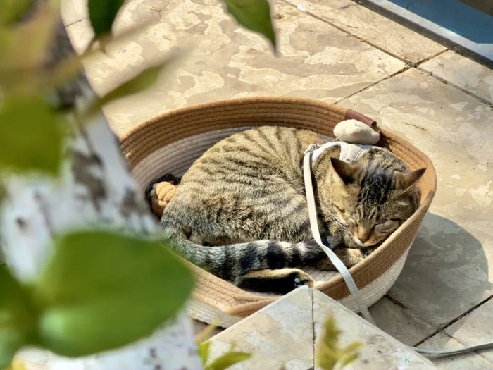 院子里有一只小猫在打盹,它蜷在墙根下,睡得正香。一切皆静静的,唯独树影在迟缓转移。