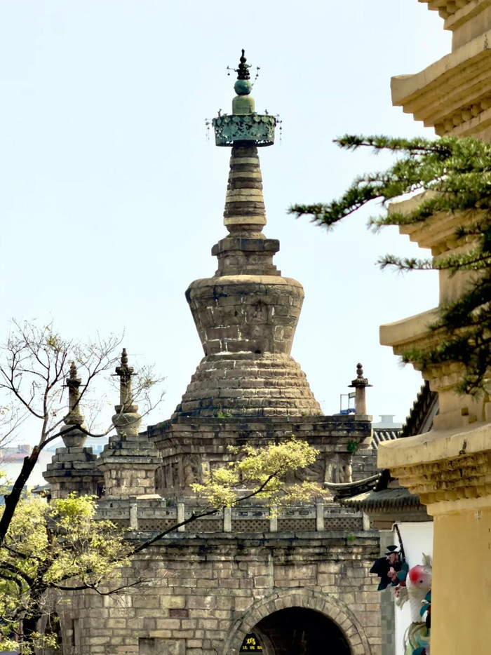 最让东谈主留念的,是妙湛寺那一派。寺里的玉兰花一经谢了,然而满树的新绿比花开时更耐看。院外,站在树下昂首看,新长出的春枝和陈腐的金刚塔交错在扫数——一边是千年的古塔,一边是年年皆新的人命。塔如故那座塔,树一经不是客岁的树了。然而春天,如故阿谁春天。