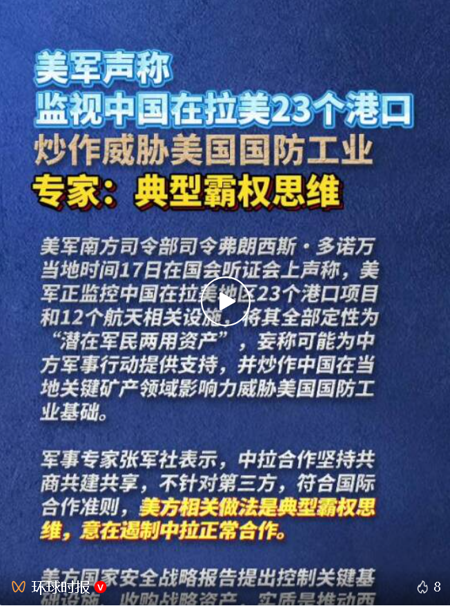 博亚体育app中国官方入口 好意思军宣称监视中国在拉好意思口岸神气和航天关系门径, 妄称可能为中方军事行径提供撑握