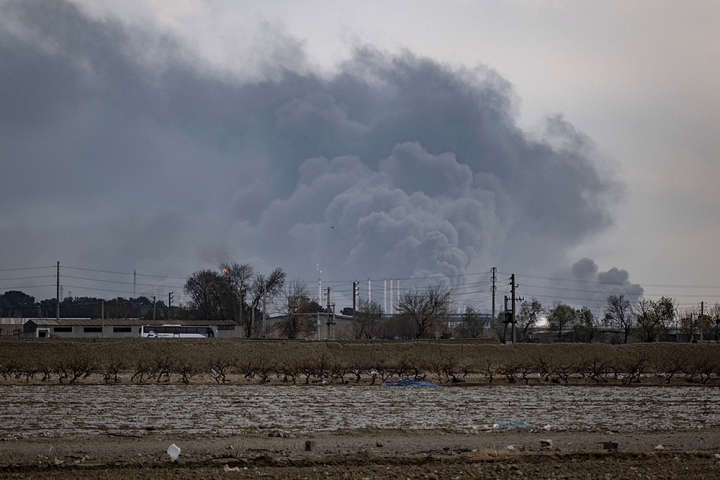 2026年3月9日,伊朗德黑兰,好意思国与以色列军事行动技艺,德黑兰石油储存步履遭袭,太空被烟尘掩盖。视觉中国尊府图